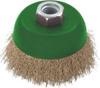 ? Saçaklı çanak fırça, Ø125mm ? 0,3mm prinç kaplı saçaklı telli, M14 dişli ? Erişilmesi güç alanlardaki pas, tortu ve boya kalıntılarını uzaklaştırmak için kullanılır ? Karton kutulu