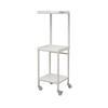 Üç katlı raf sistemi, farklı boyutlardaki medikal ürünlerin, cihazların veya sarf malzemelerin organize edilmesini kolaylaştırır. Dikey formu sayesinde dar alanlarda bile yüksek taşıma kapasitesi sunar.
