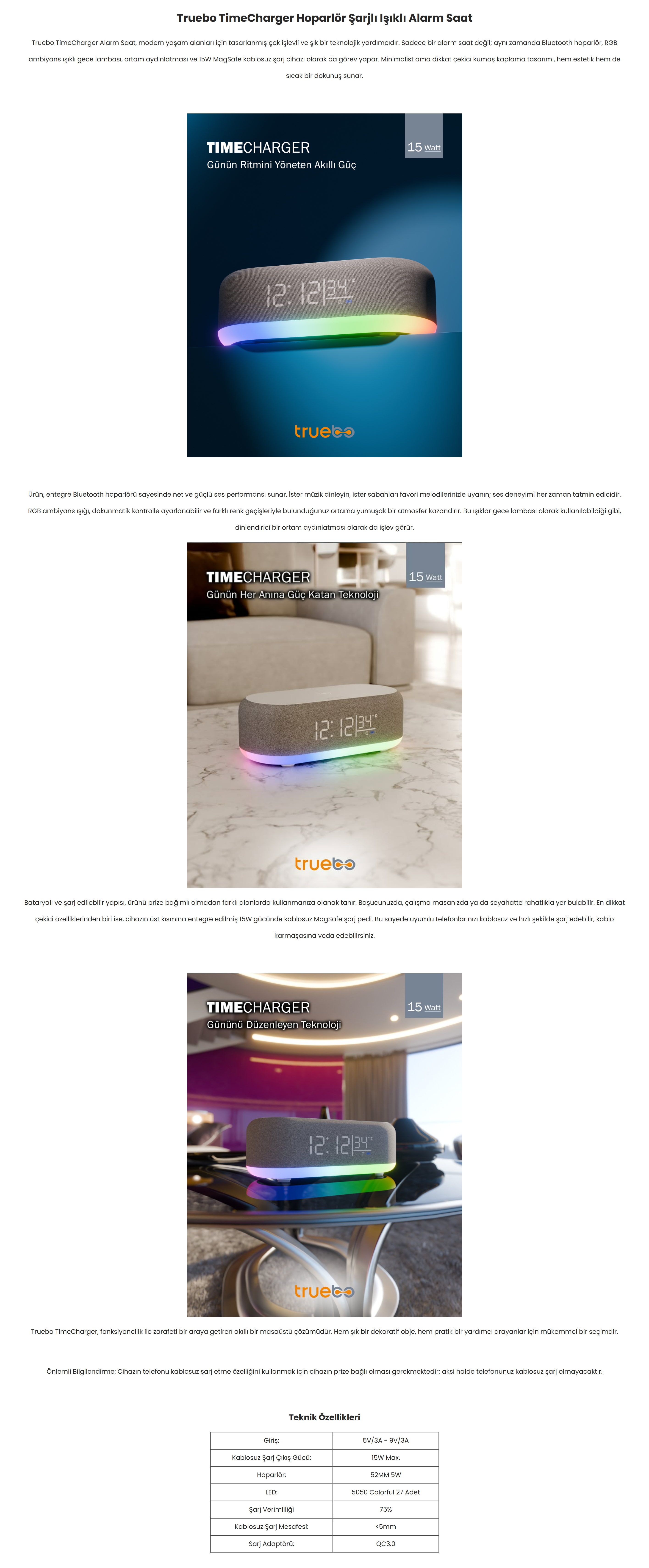 Truebo TimeCharger Hoparlör Şarjlı Işıklı Alarm Saat