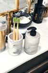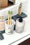 Sıvı sabunluk ve diş fırçalığından oluşan set, banyo rutininizi pratikleştirir