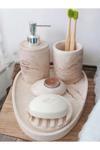 Trust Stone 5'Li Mermer Desenli Beton Banyo Seti ,Sabunluk,Diş Fırçalığı,Tepsi,Mumluk,Havluluk, Aksesuar