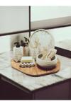 Trust Stone 6'Lı Bej Mermer Desen Beton Banyo Seti ,Sıvı Sabunluk Diş Fırçalığı Aksesuar Takımi,Havluluk,Tepsi