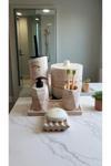 Trust Stone Mermer Desen Bej Çöp Kovasi,Banyo Seti Tuvalet Wc Sıvı Sabunluk Diş Fırçalığı Beton Aksesuar Takım