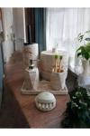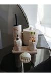 Trust Stone Mermer Desen Bej Çöp Kovasi,Banyo Seti Tuvalet Wc Sıvı Sabunluk Diş Fırçalığı Beton Aksesuar Takım