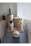 Trust Stone Mermer Desen Bej Çöp Kovasi,Banyo Seti Tuvalet Wc Sıvı Sabunluk Diş Fırçalığı Beton Aksesuar Takım