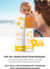 Güneş koruyucu ürünler tam koruma sağlamaz. Yoğun güneş ışığına maruz kalmaktan kaçının, özellikle 11:00–16:00 saatleri arasında çocukları doğrudan güneşe çıkarmayın. Göz ile temas ettirmeyin, temas halinde bol su ile durulayın. Serin, kuru ve ışıksız ortamda, ambalajı kapalı şekilde saklayın. Kullanmadan önce çalkalayın. Yalnızca harici kullanım içindir. Tahriş oluşursa kullanımı durdurun ve gerekli ise doktora başvurun.
