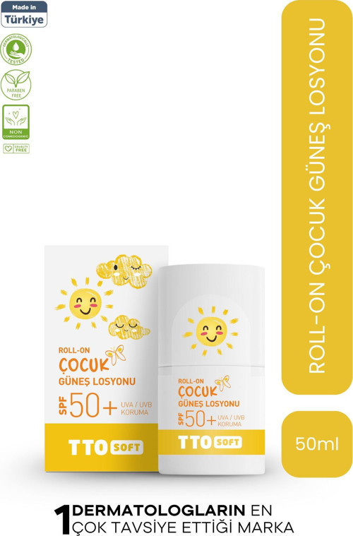 TTO SOFT GÜNEŞ LOSYONU ÇOCUK 50 SPF: Çocuklar için özel olarak formüle edilen TTO SOFT GÜNEŞ LOSYONU KIDS 50 SPF, geniş spektrumlu UVA ve UVB filtreleri etkin güneş koruması sağlar. Avokado, Jojoba, Papatya gibi doğal yağlar ve bitkisel ekstrelerle cildi nemlendirir, yumuşatır ve çevresel faktörlere karşı korumaya yardımcı olur. Suya dayanıklı formülü sayesinde deniz ve havuz sonrası da uzun süreli koruma sunar. KULLANIM ŞEKLİ: Ürünü güneşe çıkmadan 15- 20 dakika önce yeterli miktarda cilde eşit şekilde ve her 2 saatte bir yenileyerek uygulayın. Özellikle yüzme, terleme veya kurulanma sonrasında uygulamayı tekrarlayınız. Göz çevresine uygulamaktan kaçınınız. UYARILAR: Güneşten koruyucu ürünlerin %100 koruma sağlamadığını unutmayınız. Yoğun güneşe maruz kalmaktan kaçınınız, özellikle 11:00–16:00 saatleri arasında çocukları doğrudan güneşe çıkarmayınız. Göz ile temasından kaçınınız. Temas halinde bol su ile yıkayınız. Serin ve kuru yerde, direkt güneş ışığından uzakta muhafaza ediniz. Kullanmadan önce çalkalayınız. Yalnızca harici kullanım içindir. Tahriş meydana gelirse kullanımı durdurunuz ve gerekirse doktora başvurunuz. İÇİNDEKİLER/INGREDIENTS: AQUA, COCOCAPRYLATE/CAPRATE, CAPRYLIC/CAPRIC TRIGLYCERIDE, DICAPRYLYL CARBONATE, GLYCERIN, LAURYL GLUCOSIDE, POLYGLYCERYL-2- DIPOLYHYDROXYSTEARATE, ETHYLHEXYL TRIAZONE, PERSEA GRATISSIMA OIL, PHENYLBENZIMIDAZOLE SULFONIC ACID, TITANIUM DIOXIDE, BIS-ETHYLHEXYLOXYPHENOL METHOXYPHENYL TRIAZINE, PENTYLENE GLYCOL, ZINC OXIDE, POTASSIUM CETYL PHOSPHATE, STEARALKONIUM HECTORITE, TOCOPHEROL, BUTYROSPERMUM PARKII BUTTER, CANNABIS SATIVA SEED OIL, GLYCERYL CAPRYLATE, SODIUM HYDROXIDE, DEHYDROACETIC ACID, CHAMOMILLA RECUTITA FLOWER EXTRACT, XANTHAN GUM, SIMMONDSIA CHINENSIS SEED OIL, PROPYLENE CARBONATE, PERSEA GRATISSIMA FRUIT EXTRACT.