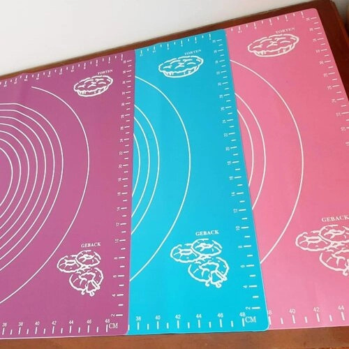 Büyük boy (50cm*40cm) Silikon Hamur Açma Matı. Silpat üzerinde şeker hamuru veya normal hamurlarınızı kolaylıkla açabilir hamurunuzun zemine yapışarak uzamasını önleyebilirsiniz. Silikon hamur açma silpatı üzerinde yapışmadan hamur açabilir şeker hamuru ile modellemeler yapabilirsiniz. Silikon Şeker hamuru açma örtülerinin alt yüzeyi kaydırmaz özelliği sayesinde serdiğiniz zemini tutarak hamur açma esnasında sağa, sola kaymaz. Silikon silpat üzerindeki ölçüler net olup hamurunuzun ebatını ayarlamanıza yardımcı olur. Silikon Şeker hamuru Örtüleri üzerinde metal kesiciler kullanılmaması önerilmektedir. Şeker hamuru silpatları gıda uyumlu silikon malzemeden üretilerek insan sağlığına zarar vermez. Silikon mat bulaşık makinesinde yıkanabilir özelliğe sahiptir.