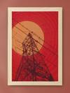 Tuable Elektrik Telleri Yüksek Akım Güneş Minimal Çizim Ahşap Çerçeveli Ahşap Dokulu Turuncu Tablo