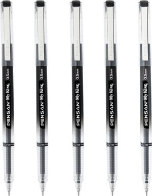 My King İğne Uçlu Metal Klipsli Jel Tükenmez Kalem 0.5 Mm Siyah - 5 Adet - Image 1