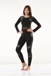 Tül transparan detaylarıyla göz kamaştıran yeni sezon çok şık modelli tayt takım modelidir.