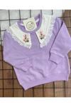 Bebeklerden yetişkinlere kadar tüm yaş gruplarına uygun, standart boyda ve regular siluetiyle her vücut tipine uyum sağlayan dantel yaka süper kaliteli sweatshirt.