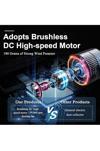 geliştirilmiş şiddetli turbofan, saniyede 60 metreye kadar, yani, süper güçlü rüzgar hızları üretebilen, maksimum 130.000 RPM çıkış hızına sahip fırçasız DC yüksek hızlı bir motor kullanır. Güçlü bir güce, uzun süreli stabiliteye sahiptir ve uzun yükler altında makineyi yakmaz. Ayrıca, tek viteste 8 saate kadar ultra uzun pil ömrü ile şarj koruması ve aşırı ısınma koruması özelliklerine de sahiptir. 4000 mAh pil kapasitesine sahip, kullanımını daha dayanıklı hale getirir! Üç hız ayarı size benzersiz bir deneyim sunar.