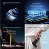 geliştirilmiş şiddetli turbofan, saniyede 60 metreye kadar, yani 16. seviye bir tayfuna eşdeğer, süper güçlü rüzgar hızları üretebilen, maksimum 160.000 RPM çıkış hızına sahip fırçasız DC yüksek hızlı bir motor kullanır. Güçlü bir güce, uzun süreli stabiliteye sahiptir ve uzun yükler altında makineyi yakmaz. Ayrıca, tek viteste 8 saate kadar ultra uzun pil ömrü ile şarj koruması ve aşırı ısınma koruması özelliklerine de sahiptir. 10.000 mAh pil kapasitesine sahip iki adet 217.000 dahili pile sahip olması, kullanımını daha dayanıklı hale getirir! Üç hız ayarı size benzersiz bir deneyim sunar.