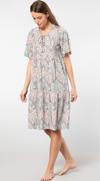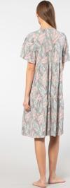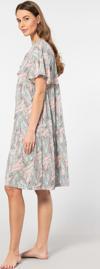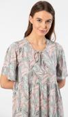 Çiçek desenli, bağlama detaylı, kısa kol kloş elbise. Rahat kalıp.