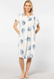 Yaprak desenli, yakası düğme detaylı elbise. Rahat kalıbı ve şık modeli konforlu kullanım sağlar.