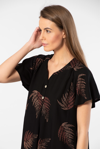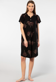 Yaprak desenli, yakası düğme detaylı elbise. Rahat kalıbı ve şık modeli konforlu kullanım sağlar.