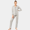 Gömlek yaka cep detaylı düğmeli uzun kollu düz pijama takımı. Rahat, nefes alan kumaş.
