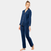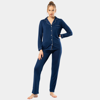 Gömlek yaka cep detaylı düğmeli uzun kollu düz pijama takımı. Rahat, nefes alan kumaş.