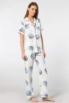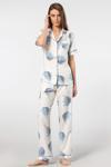 Desenli,düğmeli gömlek yaka pijama takımı.