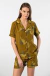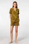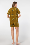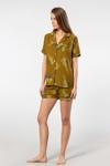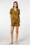 Desenli şort pijama takımı. Düğme detaylı gömlek yaka üst.