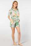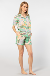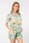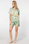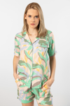 Desenli şort pijama takımı. Düğme detaylı gömlek yaka üst.
