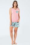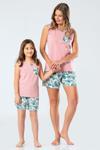 Yaprak desenli cep detaylı kolsuz şortlu anne-kız pijama takımı. Terletme yapmayan %100