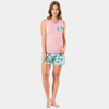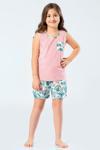 Yaprak desenli cep detaylı kolsuz şortlu anne-kız pijama takımı. Terletme yapmayan %100