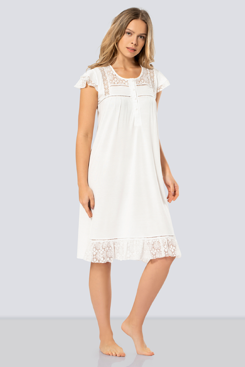 Yakası ve etekleri dantel detaylı, kısa kollu gecelik. Rahat kalıp.