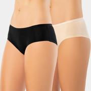 Elastan ve pamuklu kumaş kullanılarak üretilmiş dikişsiz külot. Kıyafetlerinizde iz bırakmaz. Düşük bel. 2'li paket.
