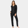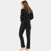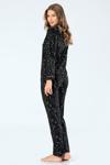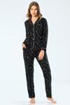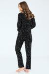 Yıldız desenli cep detaylı gömlek yaka düğmeli uzun kollu pijama takımı. Terletmeyen viskon