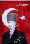 Nostaljik Lezzetler Türk Bayrağı 10 Adet Kalpaklı Atatürk Posterli Saten Türk Bayrağı K.Atatürk İmzalı Türk Bayrağı 70x100