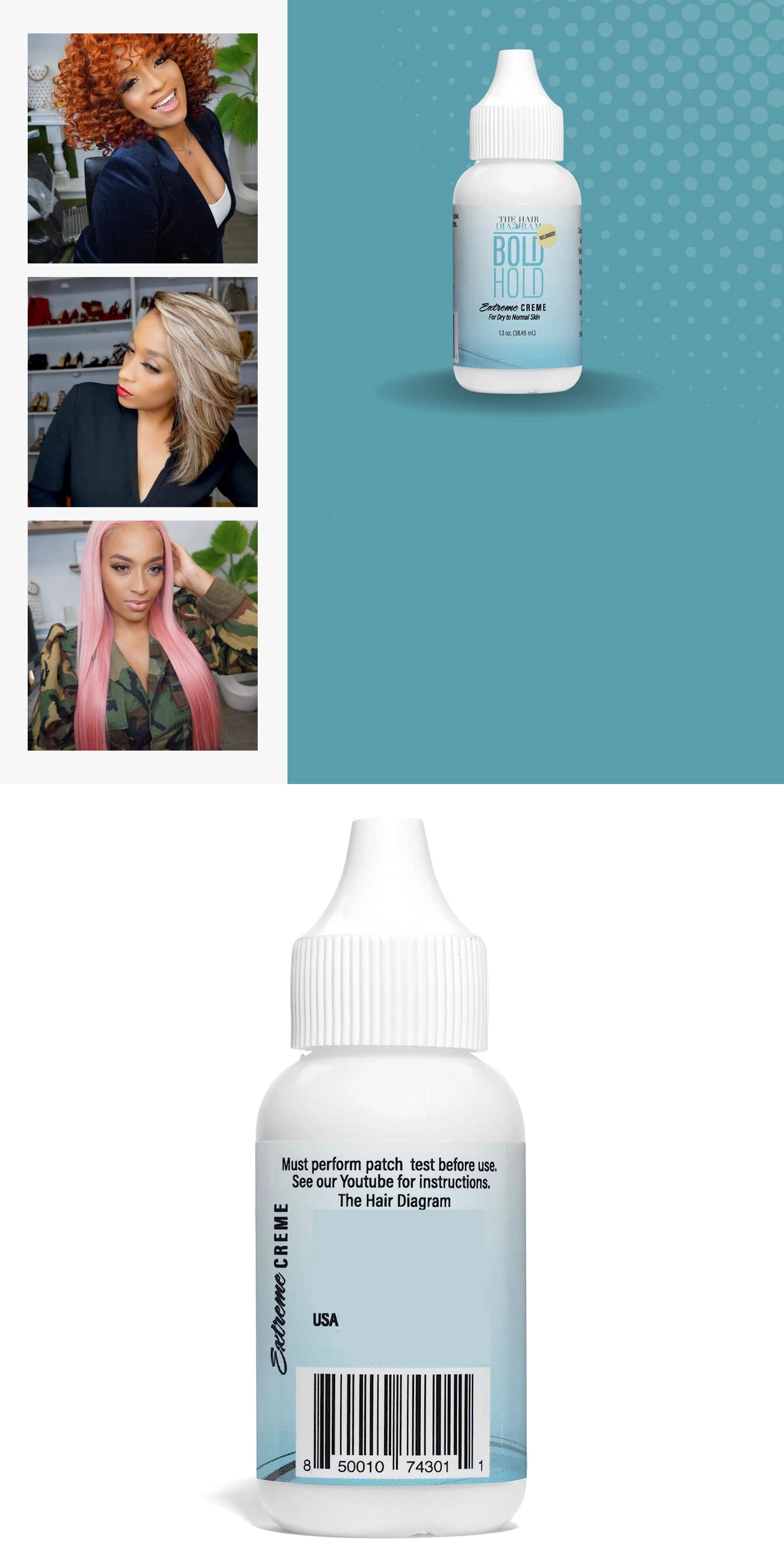 BOLD HOLD EXTREME CREME: Yeni vazgeçilmeziniz, hafif yapışan dantel yapıştırıcınız! Tipik geçici yapıştırıcınız olmayan Bold Hold Extreme Creme, saç derinize, dantellerinize veya kenarlarınıza zarar vermeden dantel ön peruklar ve saç sistemleri için hafif, üstün, kalıcı bir tutuş sağlamak üzere tasarlanmış, toksik olmayan, su bazlı bir yapıştırıcıdır.