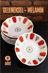 6’lı melamin çay tabağı seti, geleneksel kırmızı desenli ve altın yaldızlı tasarım. Dayanıklı, şık ve kolay temizlenen nostaljik bir seçenek!