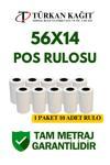 56x14 termal rulo - Yazarkasa pos rulosu - 5 paket 50 adet tüm termal cihazlarda kullanıma uygundur, parlak termal kağıttır, kağıt gramajı m2/48gr, silik yazım ve sıkışma türü sorunlar yaşatmaz, en: 56mm uzunluk: 14 metre, 56mm×14m pos rulosu, 56x14 termal rulo, 56x14 termal yazarkasa pos rulosu, işletmenizin yazarkasa ve pos sistemleri için mükemmel bir seçenektir.