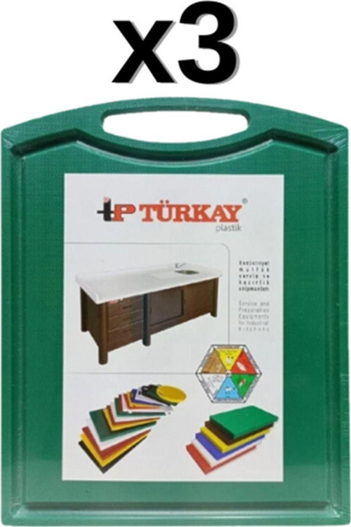 Türkay 3'Lü 32.5X26.5X2 Cm Saplı-Oluklu Polietilen Kesme Tahtası Kesim Levhası 1244