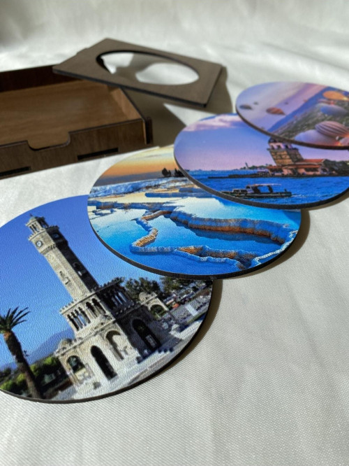 Doğal ahşap malzemesiyle üretilmiş, dayanıklı ve uzun ömürlü kullanım sunar Türkiye'nin eşsiz manzaralarını yansıtan desenleriyle sofra düzeninize estetik bir dokunuş katar 4'lü set halinde sunulan bardak altlıkları, misafirlerinize şık bir sunum imkanı sağlar Ahşap yapısı sayesinde her türlü yüzeye kolayca yerleştirilebilir ve kayma yapmaz