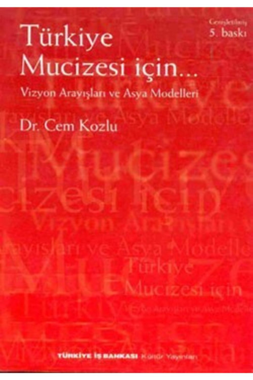 Yayınevi İş Bankası Kültür Yayınları Yazar Cem Kozlu Barkod 9789754580624 Baskı Sayısı 6.Baskı Basım Yılı 2003 Sayfa Sayısı 493 Cilt Durumu Ciltsiz Vizyon nedir? Neren kaynaklanır, nasıl oluşur? Neleri kapsar? Ülkemiz için gerçekçi olarak nasıl bir vizyonu kurabilir ve hayata geçirebiriz?.. Ülkemizin geleceğini planlarken gündemimize hangi konuları, nasıl bir öncelikle almalıyız? Kaynağı yabancı olan vizyon boyutları ülkemiz için geçerli olabilir mi?..Nereden geldik, nereye doğru gitmekteyiz?.. İdeolojinin Sonu nun gelmiş olması, insanlığı Tarihin Sonu na mı getirdi?..Süratle katlanan bilim ve teknoloji birikimi önümüzdeki yıllarda nası bir dünya oluşturacak ve bizi nasıl etkileyecek?..Cem Kozlu Türkiye Mucizesi İçin kitabında, daha yaşanır, daha zengin, daha mutlu bir ülke olmanın yollarını arıyor ve çözümler öneriyor.