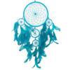 Turkuaz rengi düş kapanımız el işçiliği ile üretilmiştir. Ürünümüzün yuvarlak kısmı 16 santimetre çapındadır. Ürünümüz ip dahil 57 santimetre boyundadır.