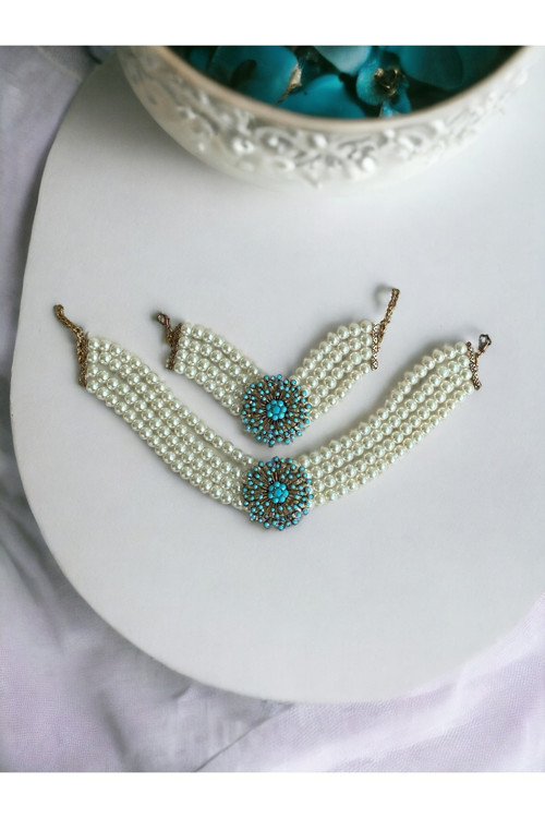 Fayra Accessorıes Turkuaz Taşlı Dandelion Inci Kolye Ve Inci Bileklik Seti