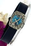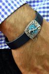 gümüş uçlu turkuaz taşlı tasarım deri erkek bileklik