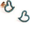 Turkuaz taşlı gümüş üzerine rose altın kaplama kalpli küpe