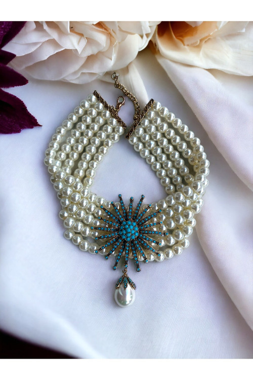 Ürün Adı: Turkuaz Taşlı İnci Kolye