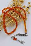 İmame Maddesi: Kehribar Püskül Maddesi Alpaka Püskül Üretildiği Malzeme: Kehribar Ana Renk: Şeffaf Turuncu Tane Ölçüsü: 6x11 Toplam Uzunluk: 32 cm Ağırlık: 15 gr;