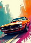 Karizmart Turuncu Klasik Araba Çizimi Modern Ahşap Tablo