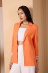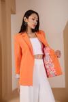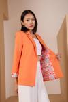 Turuncu Kruvaze Yaka Kolu Katlama Detaylı Regular Vatkalı Blazer Ceket