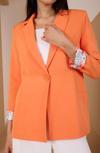 Bolivente Turuncu Kruvaze Yaka Kolu Katlama Detaylı Regular Vatkalı Blazer Ceket