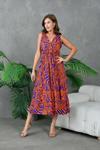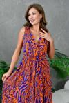 Woman Vısıon Turuncu Mavi Zebra Desenli Kruvaze Yaka Bel Lastikli Yırtmaçlı Şık Kadın Elbise DKS-001