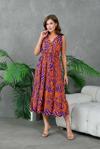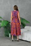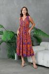 Turuncu Mavi Zebra Desenli Kruvaze Yaka Bel Lastikli Yırtmaçlı Şık Kadın Elbise DKS-001