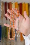 Merhaba! Sizi turuncu renk altın varaklı iri taneli tesbihimizin eşsiz güzelliğiyle tanıştırmak istiyorum. Bu tesbih, estetik açıdan göz kamaştıran bir kombinasyon olan turuncu rengin zarafetini ve altın varak detaylarının lüksünü bir araya getiriyor.